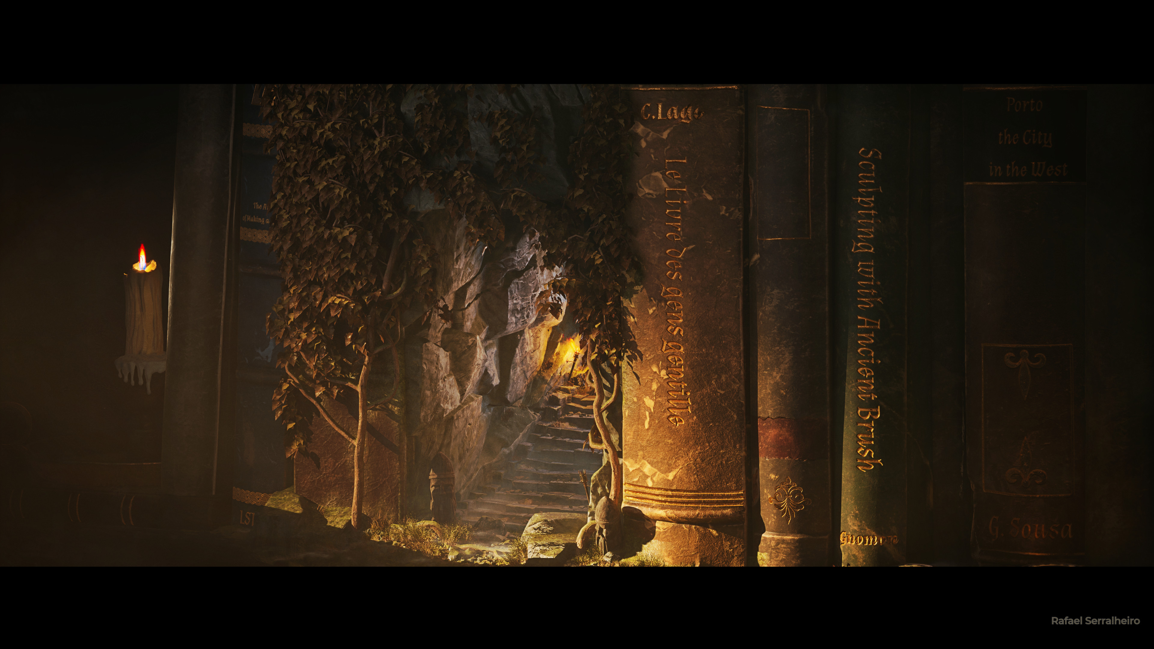 With this piece, I wanted to pay homage to the fantasy genre — a constant source of wonder that has fueled my imagination and deeply influenced my work. The idea behind the scene is simple: like a door or a book, it represents a connection point between two worlds — between us and our ideas, our memories, or places we create.